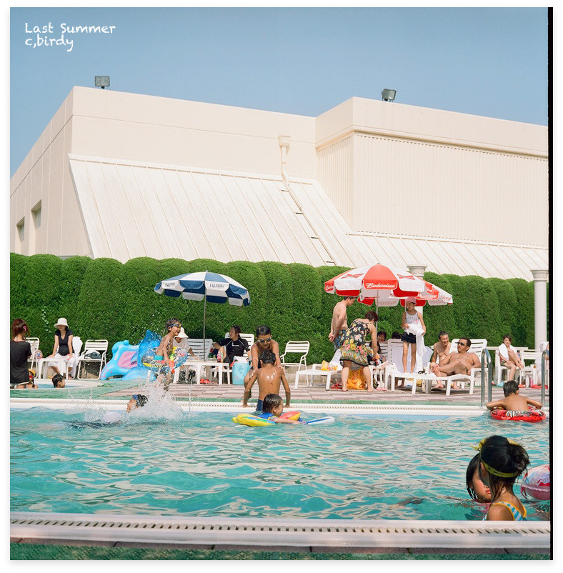 プールサイドから目を細めて恨めしげに見つめる私に