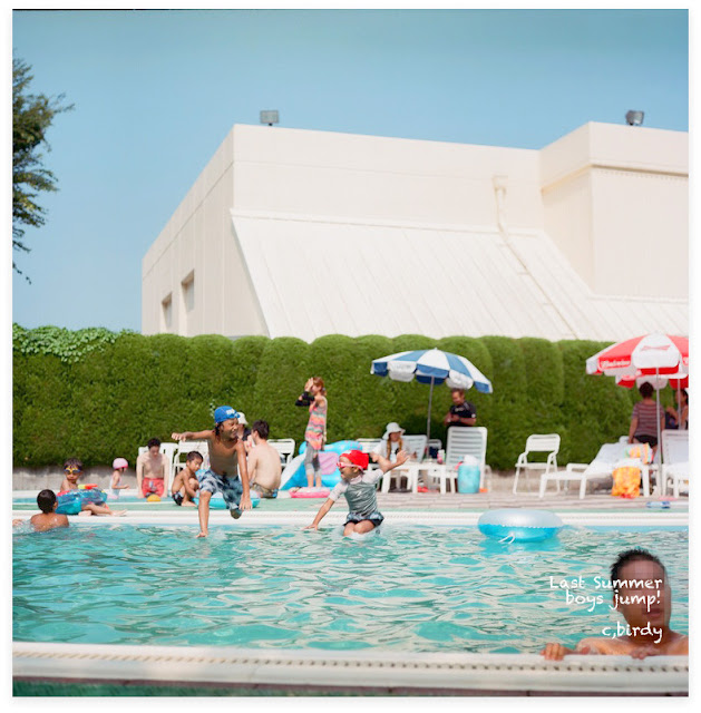 プールサイドから目を細めて恨めしげに見つめる私に